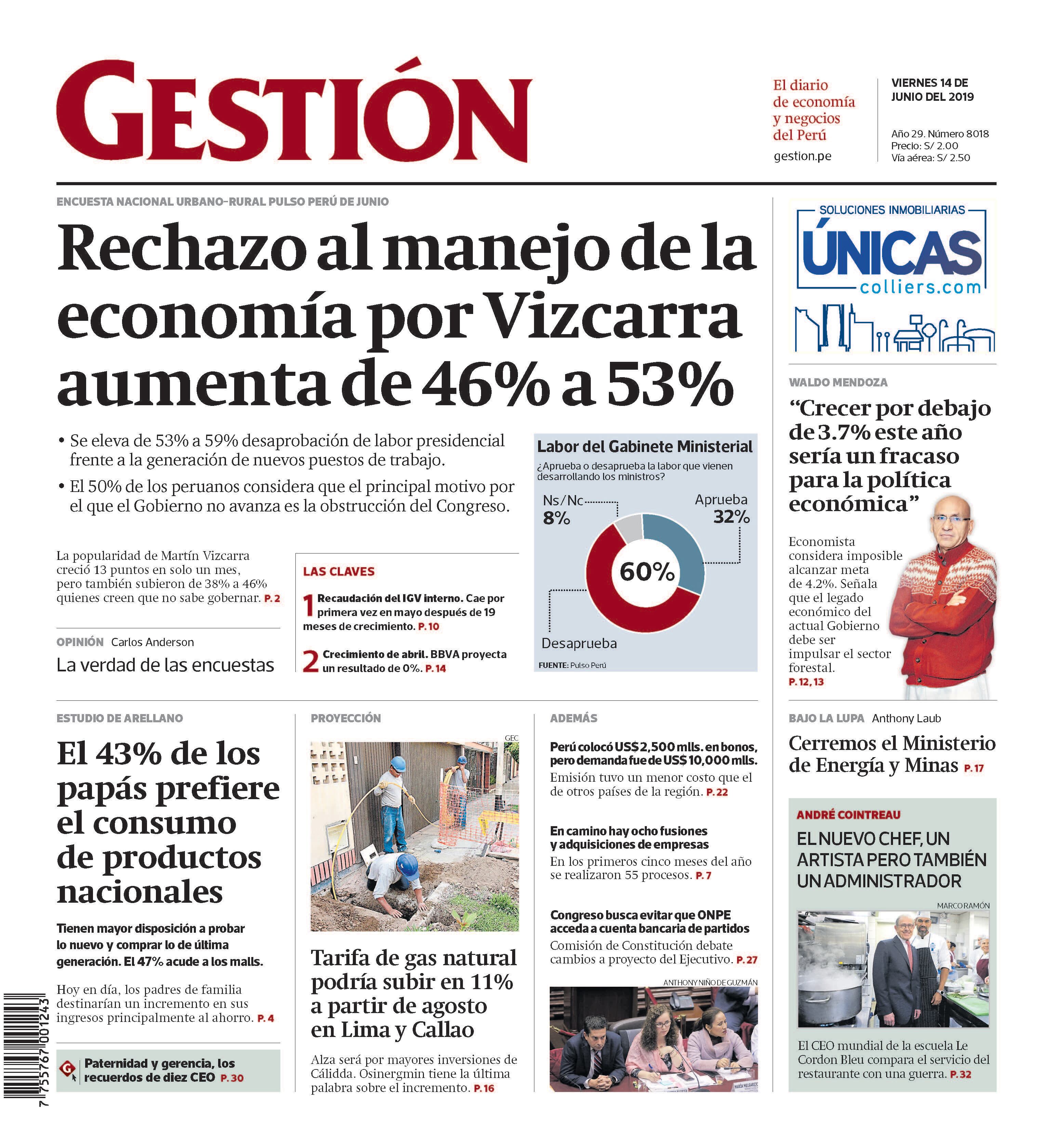 RECHAZO AL MANEJO DE LA ECONOMÍA POR VIZCARRA AUMENTA DE 46% A 53%