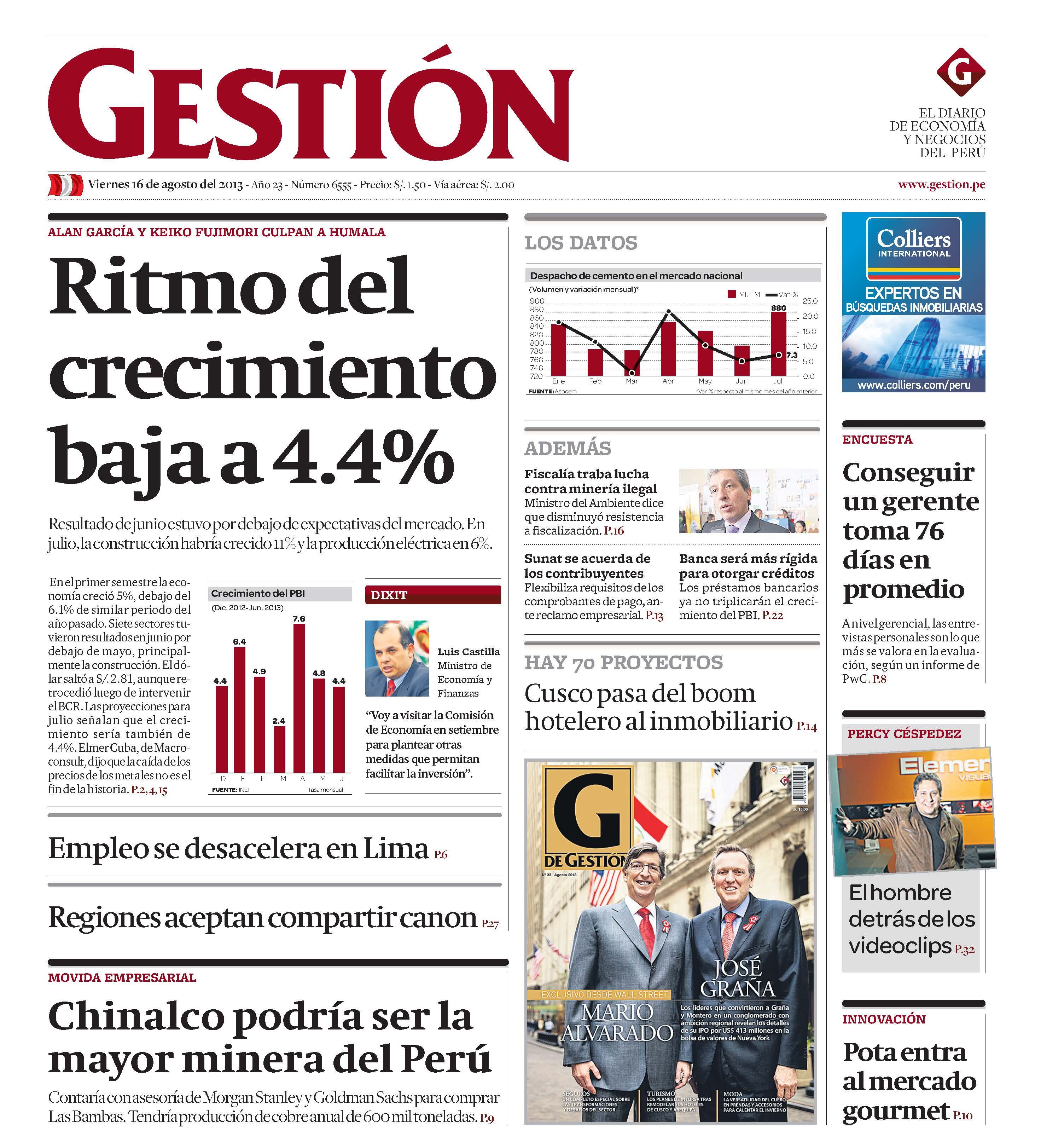 Resultado de junio estuvo por debajo de expectativas del mercado. En julio, la construcción habría crecido 11% y la producción eléctrica en 6%. En el primer semestre la economía creció 5%, debajo del 6.1% de similar periodo del año pasado. Siete sectores tuvieron resultados en junio por debajo de mayo, principalmente la construcción. El dólar saltó a S/. 2.81, aunque retrocedió luego de intervenir el BCR.