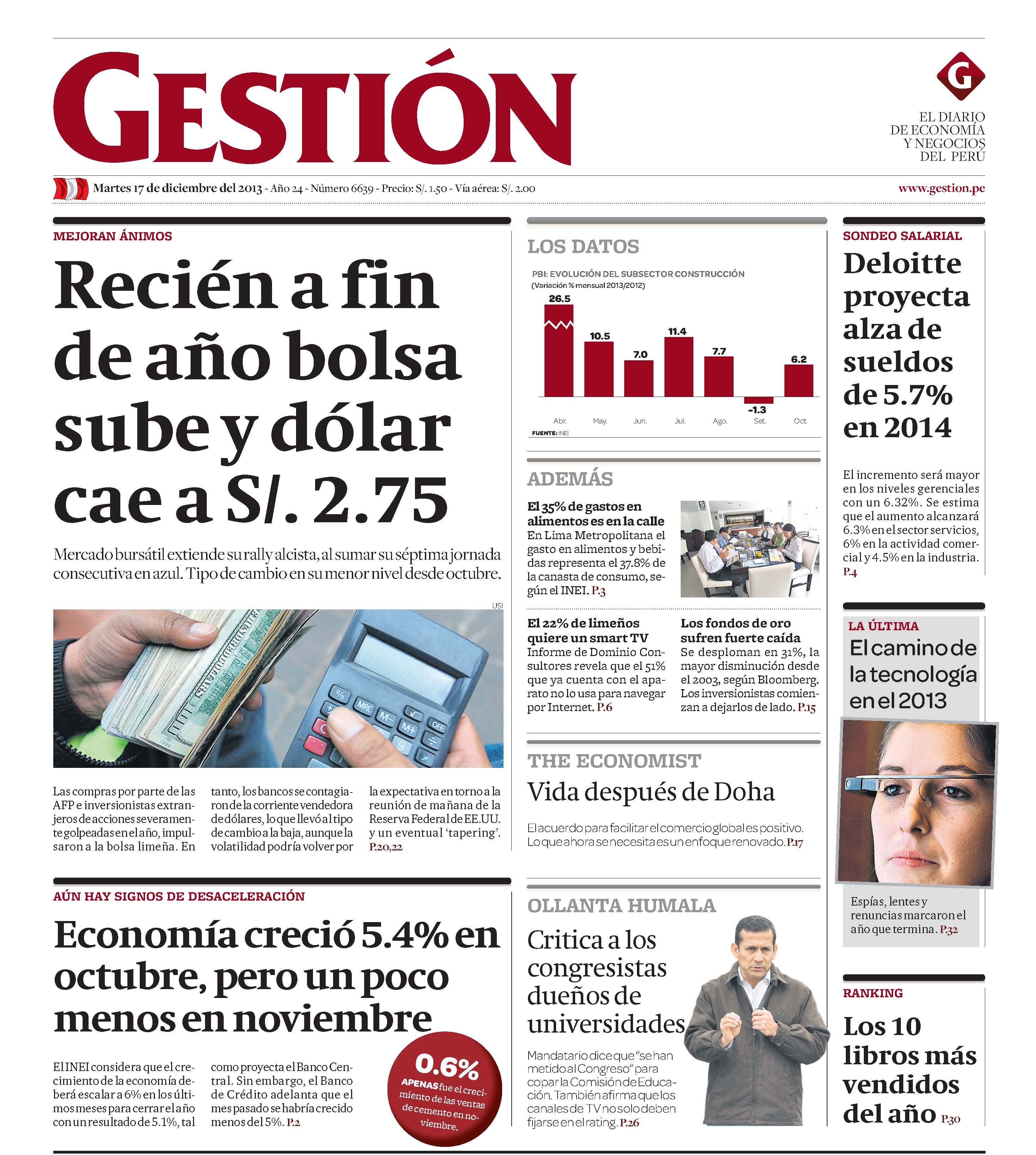 RECIÉN A FIN DE AÑO BOLSA SUBE Y DÓLAR CAE A S/. 2.75