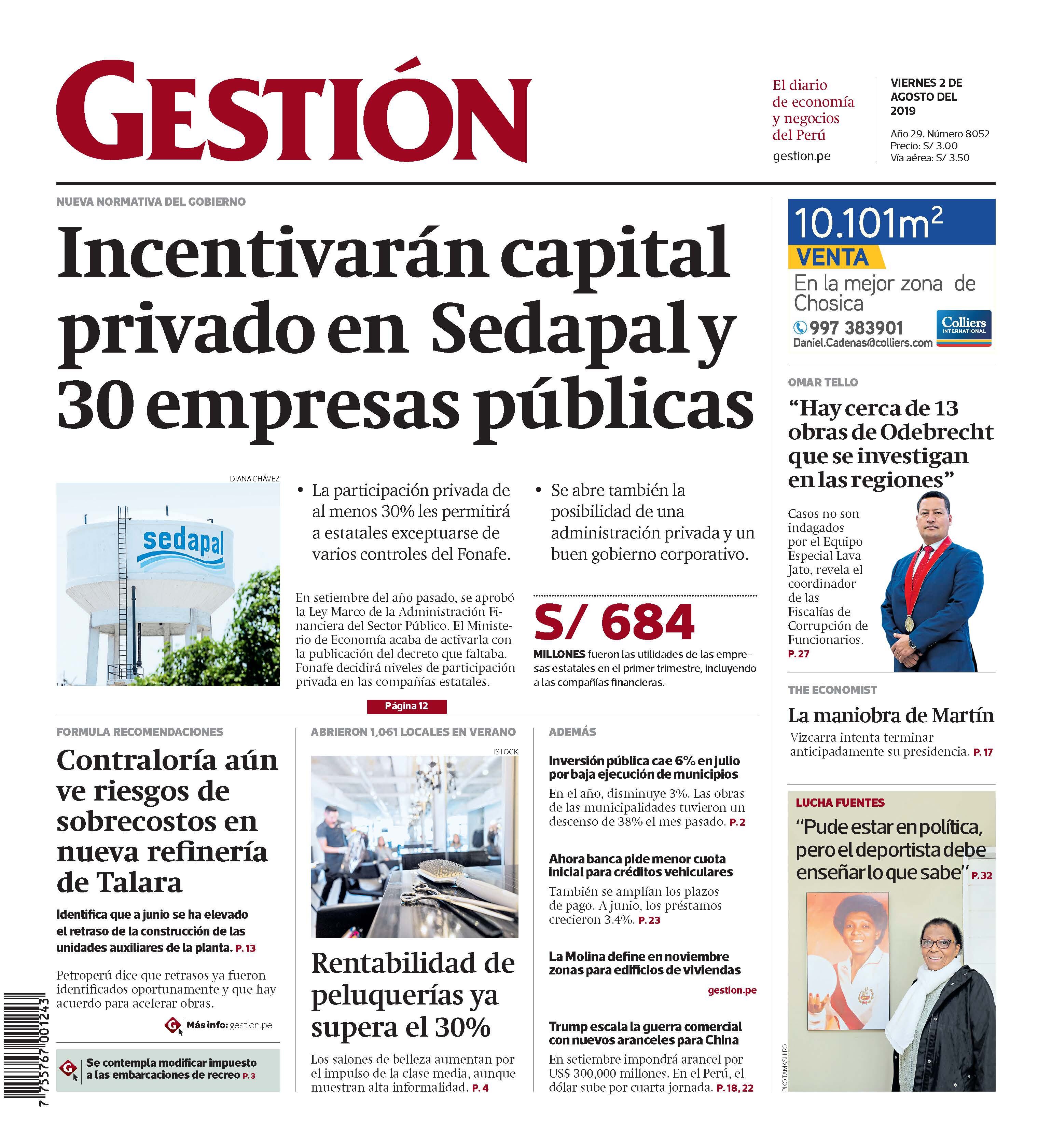 INCENTIVARÁN CAPITAL PRIVADO EN SEDAPAL Y 30 EMPRESAS PÚBLICAS