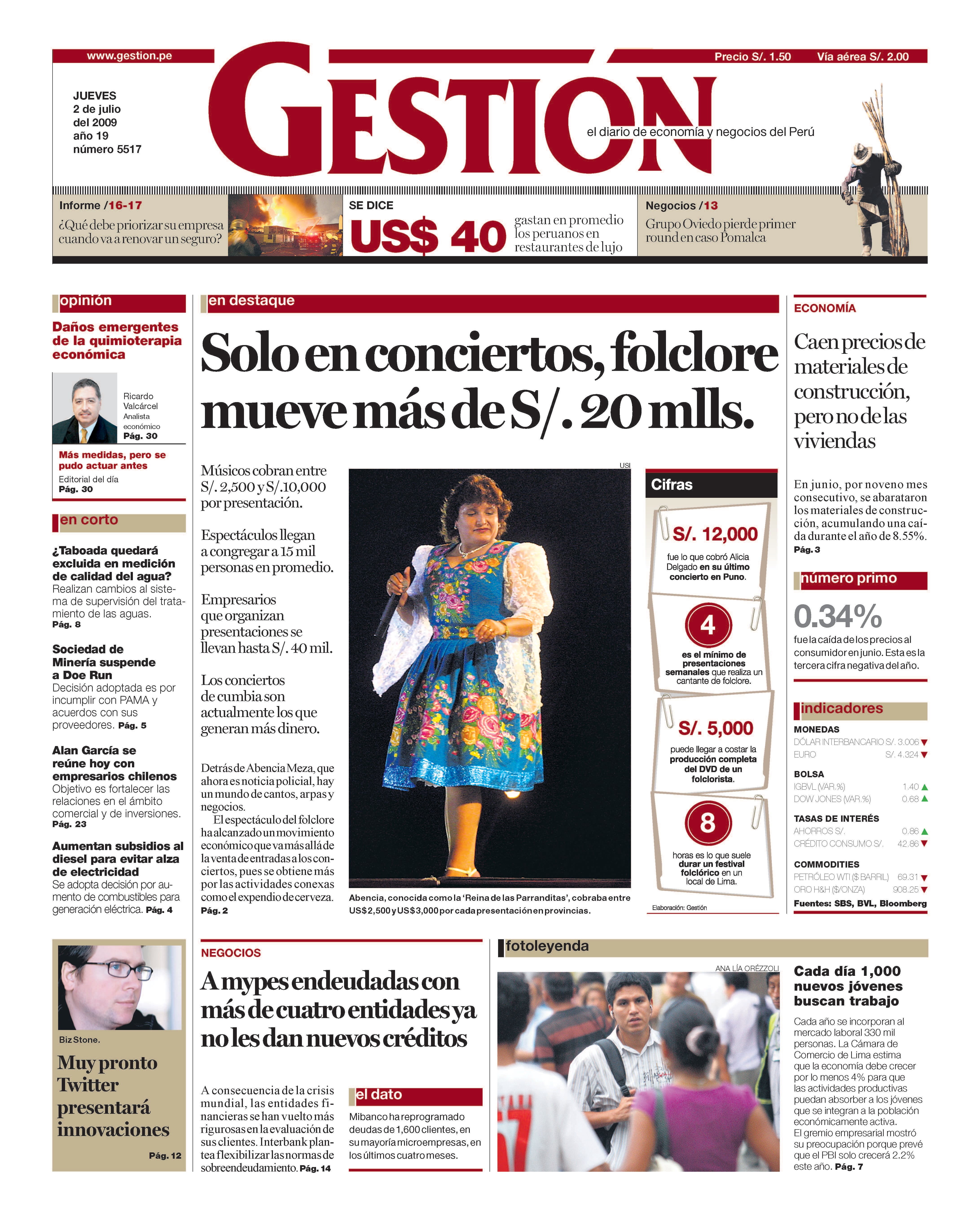Músicos cobran entre S/. 2,500 y S/.10,000 por presentación. Espectáculos llegan a congregar a 15 mil personas en promedio. Empresarios que organizan presentaciones se llevan hasta S/. 40 mil. Los conciertos de cumbia son actualmente los que generan más dinero. Detrás de Abencia Meza, que ahora es noticia policial, hay un mundo de cantos, arpas y negocios. El espectáculo del folclore ha alcanzado un movimiento económico que va más allá de la venta de entradas a los conciertos, pues se obtiene más por las actividades conexas como el expendio de cerveza.
