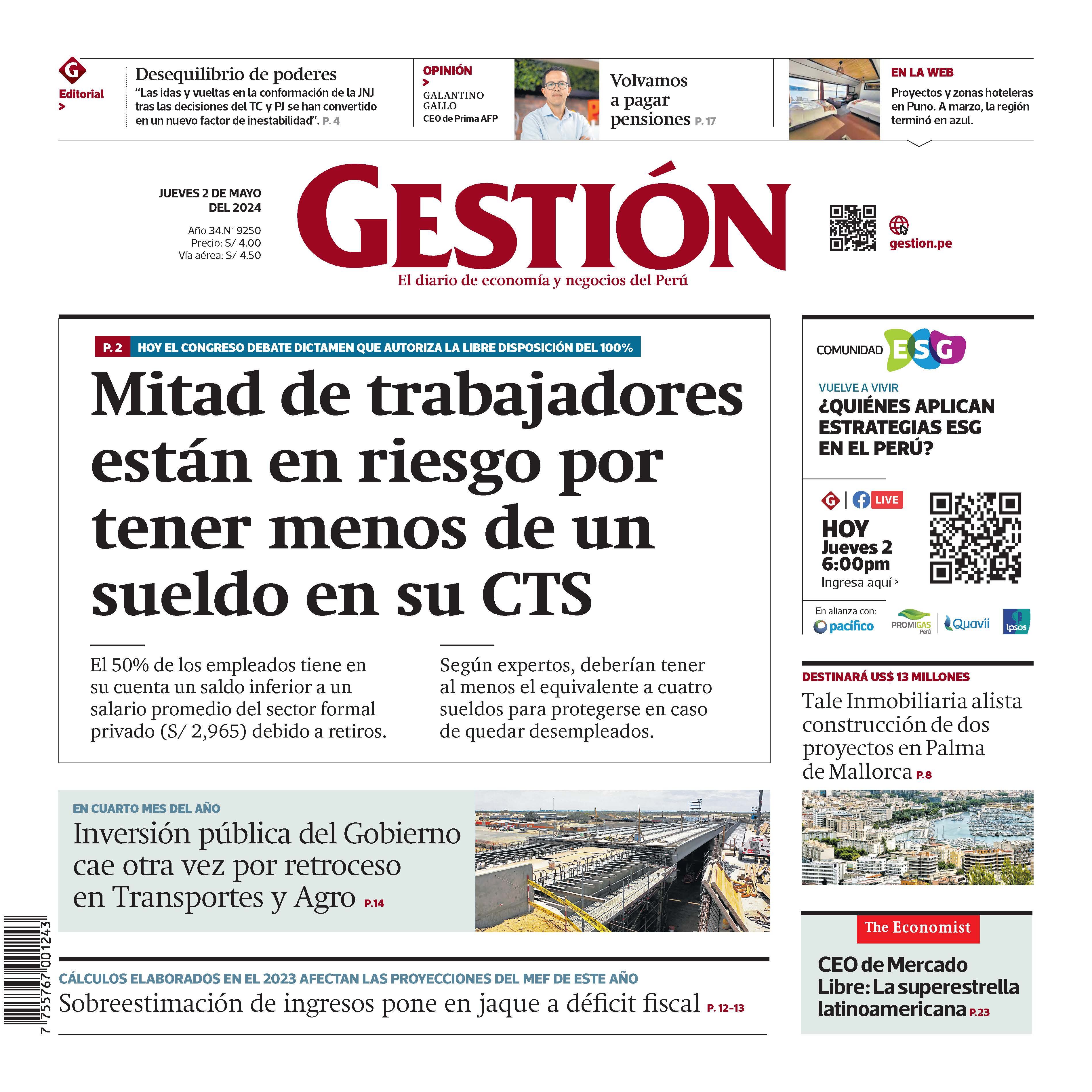 Hoy el Congreso debate dictamen que autoriza la libre disposición del 100%. El 50% de los empleados tiene en su cuenta un saldo inferior a un salario promedio del sector formal privado (S/ 2,965) debido a retiros. Según expertos, deberían tener al menos el equivalente a cuatro sueldos para protegerse en caso de quedar desempleados.