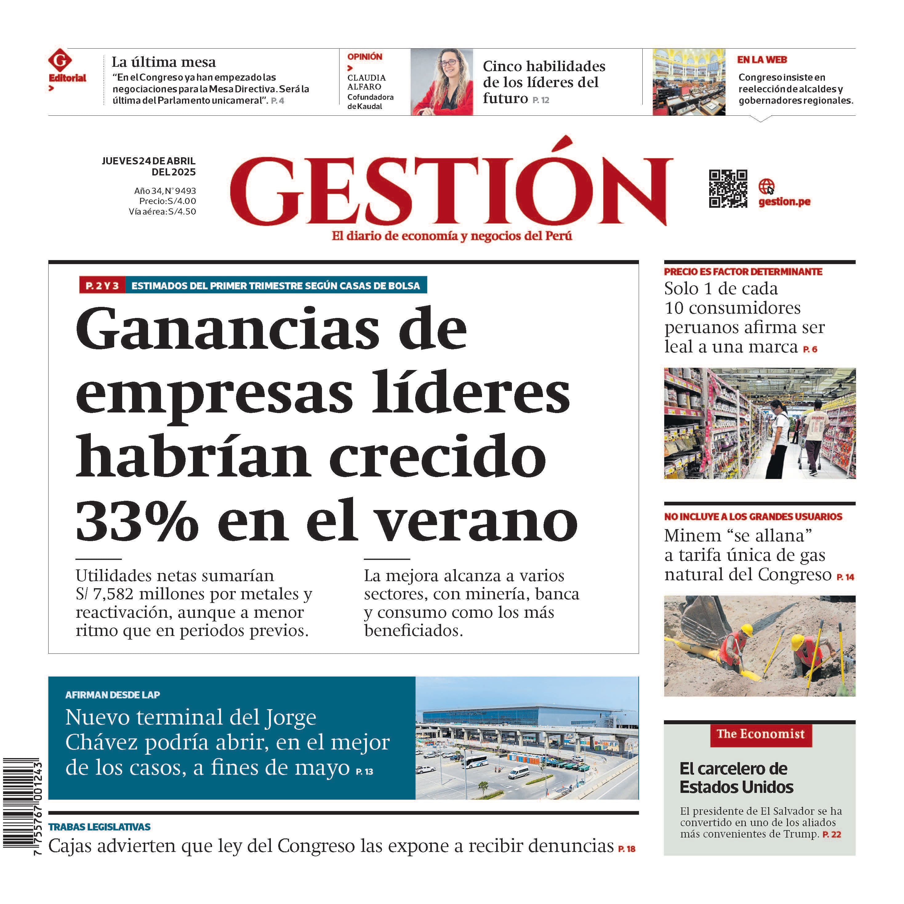 Utilidades netas habrían ascendido a S/ 7,582 millones a ritmo saludable -pero menor que en periodos previos- por alza de metales y recuperación económica. Mejora abarca a mayoría de sectores, pero conmás beneficios para la minería, bancos y compañías de consumo. Las ganancias de las principales empresas listadas en la Bolsa de Valores de Lima (BVL) continúan en ascenso, pero a un menor ritmo. Las utilidades netas de estas compañías habrían alcanzado los S/ 7,582 millones en el primer trimestre, con un incremento de 33% respecto de igual periodo del 2024, según estimados de cinco casas de bolsa compilados y consensuados por la BVL.