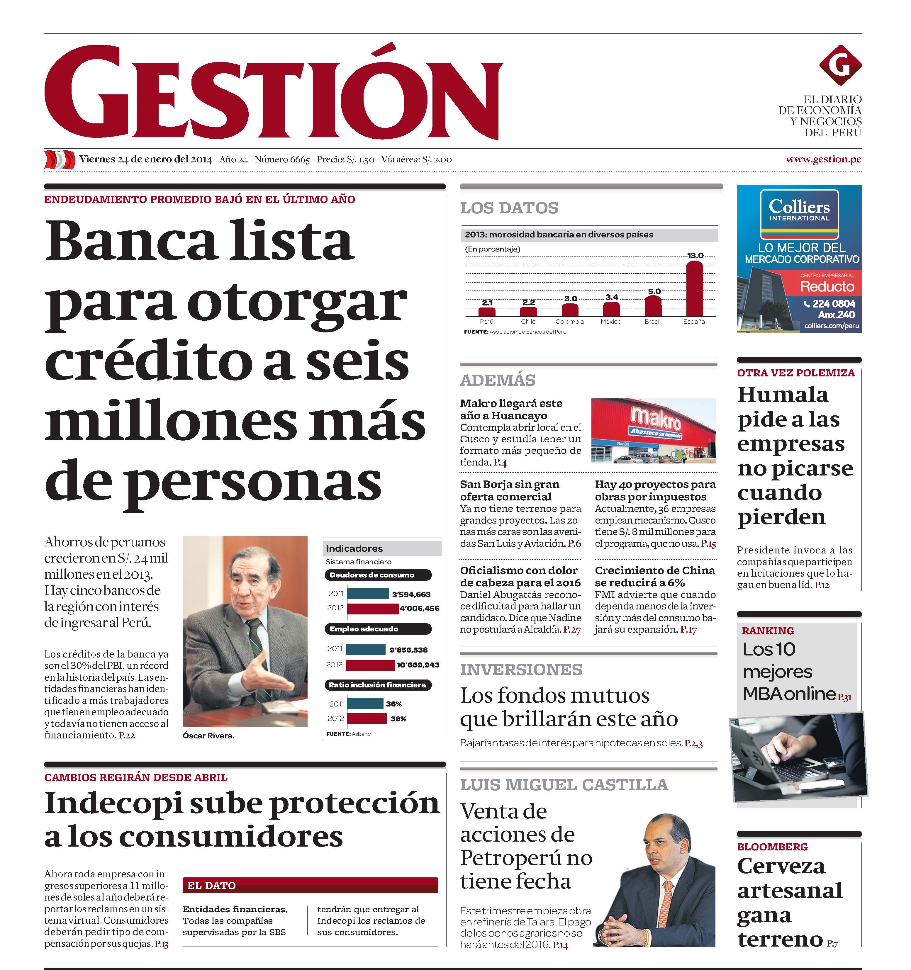 Ahorros de peruanos crecieron en S/. 24 mil millones en el 2013. Hay cinco bancos de la región con interés de ingresar al Perú. Los créditos de la banca ya son el 30% del PBI, un récord en la historia del país. Las entidades financieras han identificado a más trabajadores que tienen empleo adecuado y todavía no tienen acceso al financiamiento.