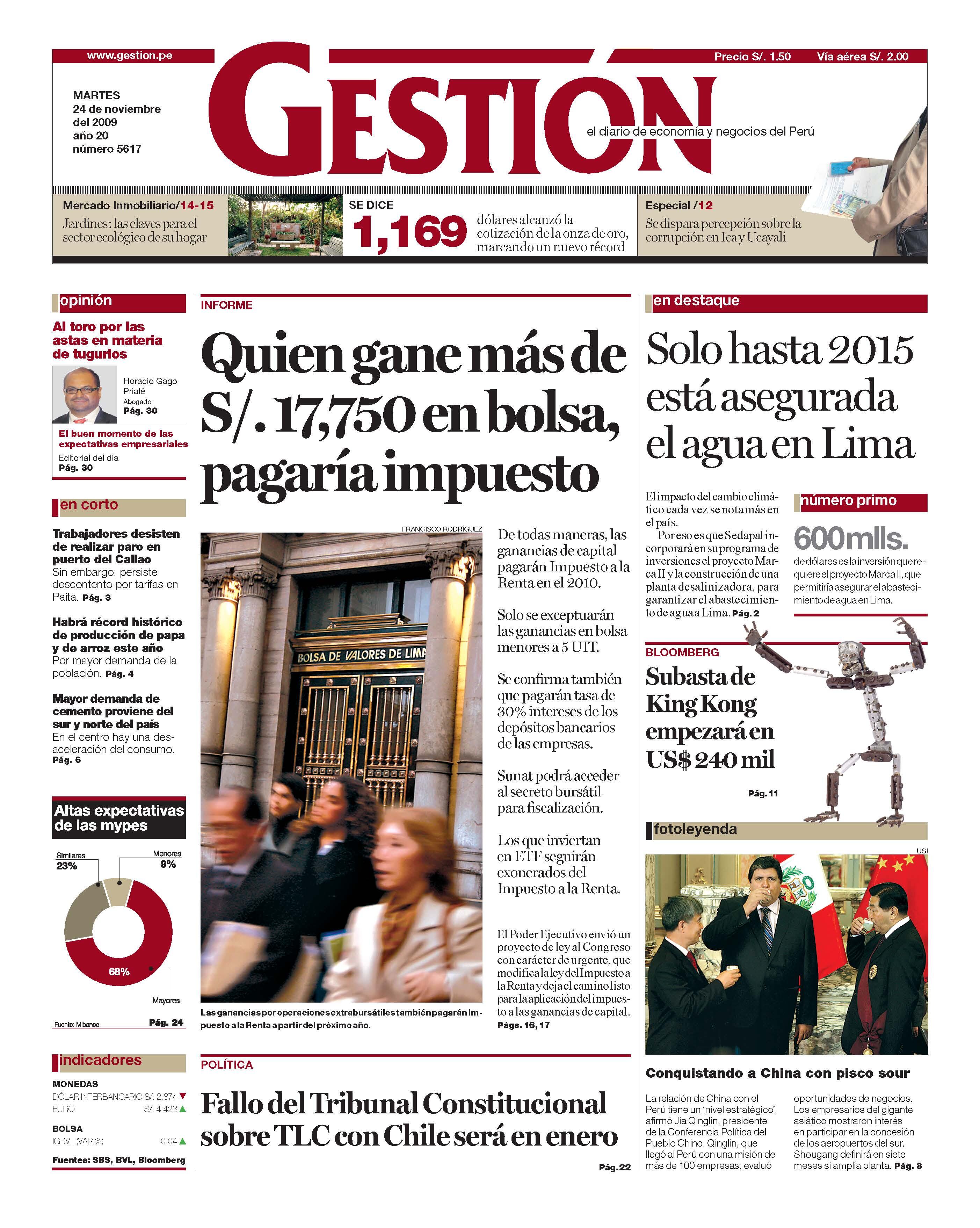 De todas maneras, las ganancias de capital pagarán Impuesto a la Renta en el 2010. Solo se exceptuarán las ganancias en bolsa menores a 5 UIT. Se confirma también que pagarán tasa de 30% intereses de los depósitos bancarios de las empresas. Sunat podrá acceder al secreto bursátil para fiscalización. Los que inviertan en ETF seguirán exonerados del Impuesto a la Renta. El Poder Ejecutivo envió un proyecto de ley al Congreso con carácter de urgente, que modifica la ley del Impuesto a la Renta y deja el camino listo para la aplicación del impuesto a las ganancias de capital.