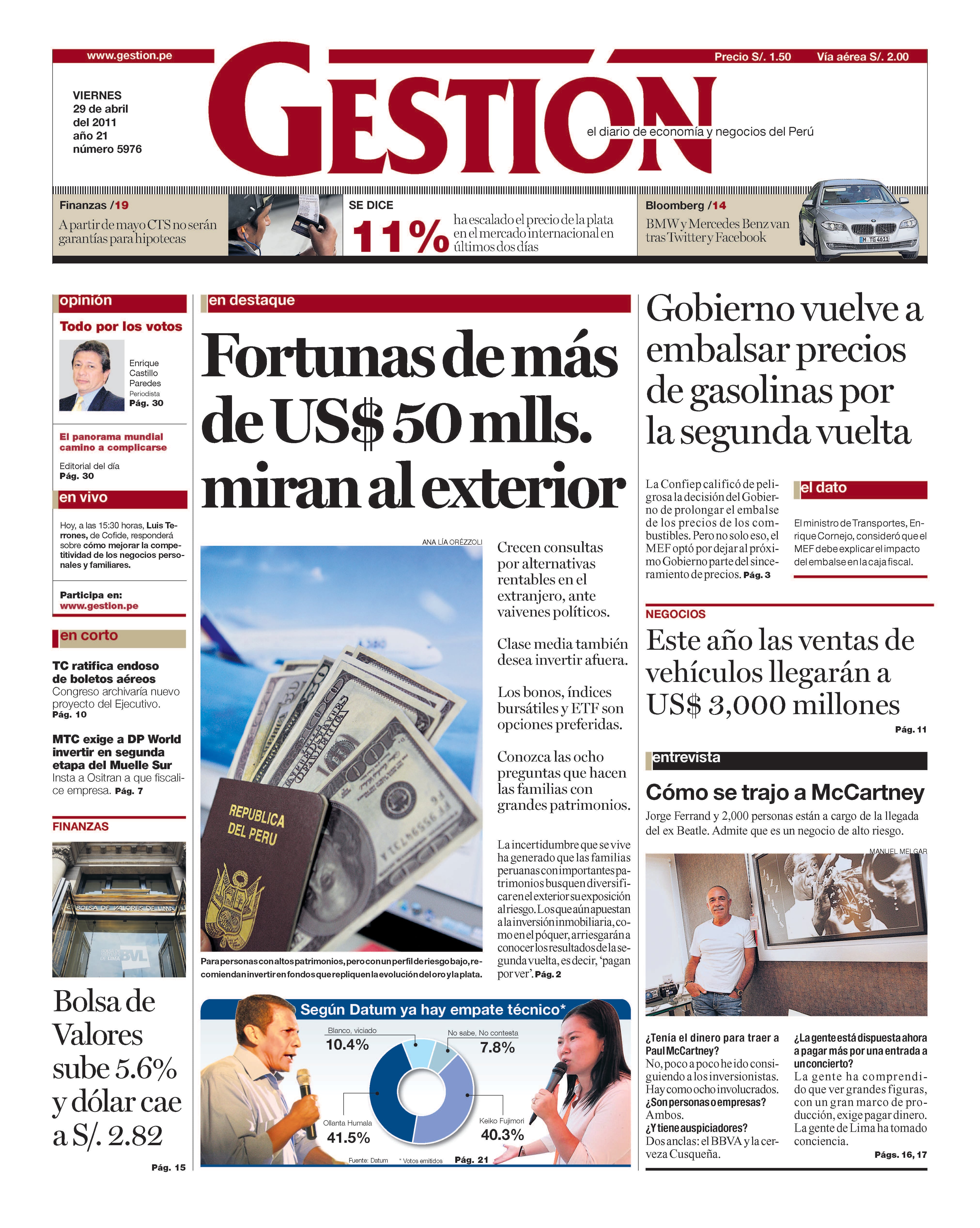 Crecen consultas por alternativas rentables en el extranjero, ante vaivenes políticos. Clase media también desea invertir afuera. Los bonos, índices bursátiles y ETF son opciones preferidas. Conozca las ocho preguntas que hacen las familias con grandes patrimonios. La incertidumbre que se vive ha generado que las familias peruanas con importantes patrimonios busquen diversificar en el exterior su exposición al riesgo. Los que aún apuestan a la inversión inmobiliaria, como en el póquer, arriesgarán aconocer los resultados de la segunda vuelta, es decir, ‘pagan por ver’.
