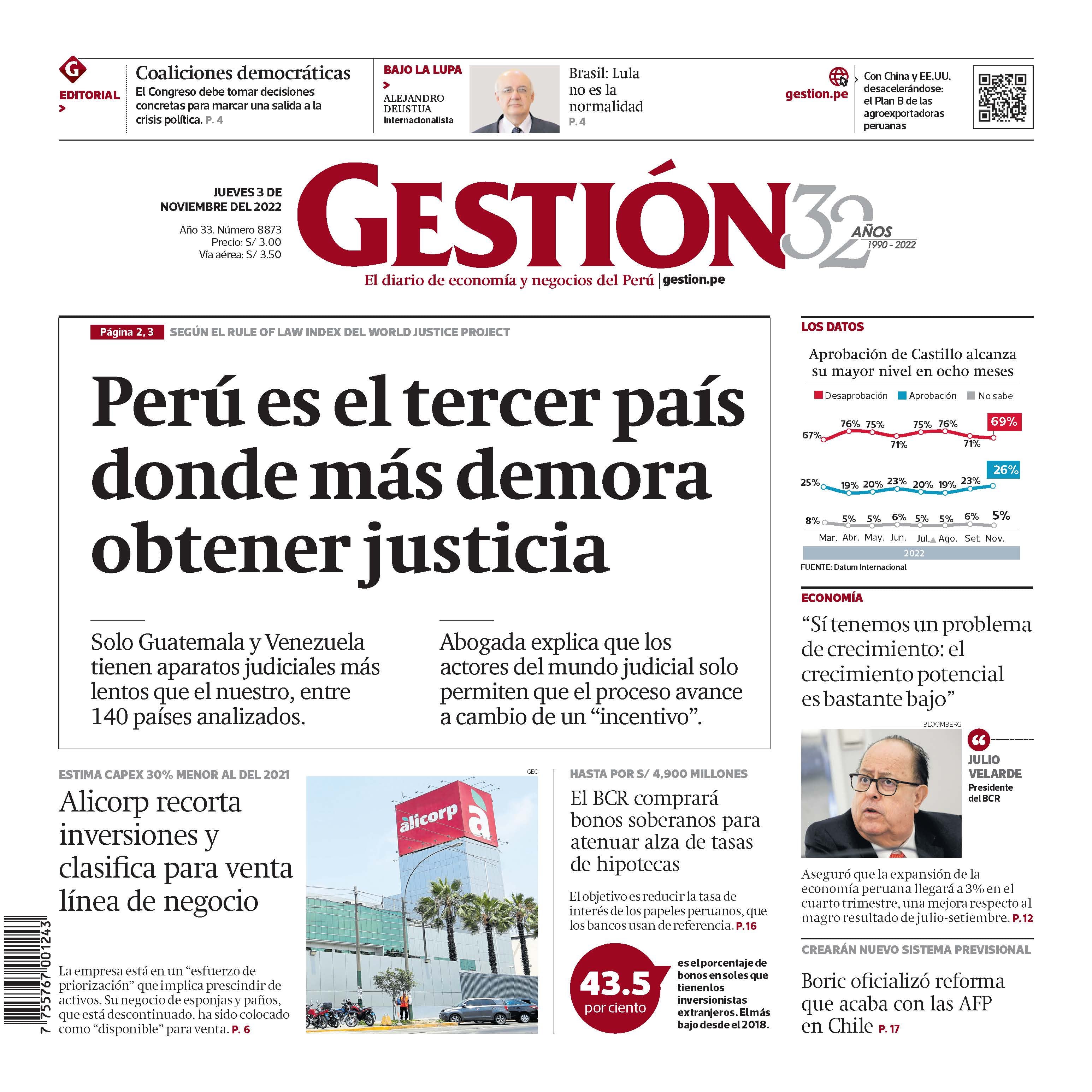 Solo Guatemala y Venezuela tienen aparatos judiciales más lentos que el nuestro, entre 140 países analizados. Abogada explica que los actores del mundo judicial solo permiten que el proceso avance a cambio de un “incentivo. Aprobación de Castillo alcanza su mayor nivel en ocho meses.