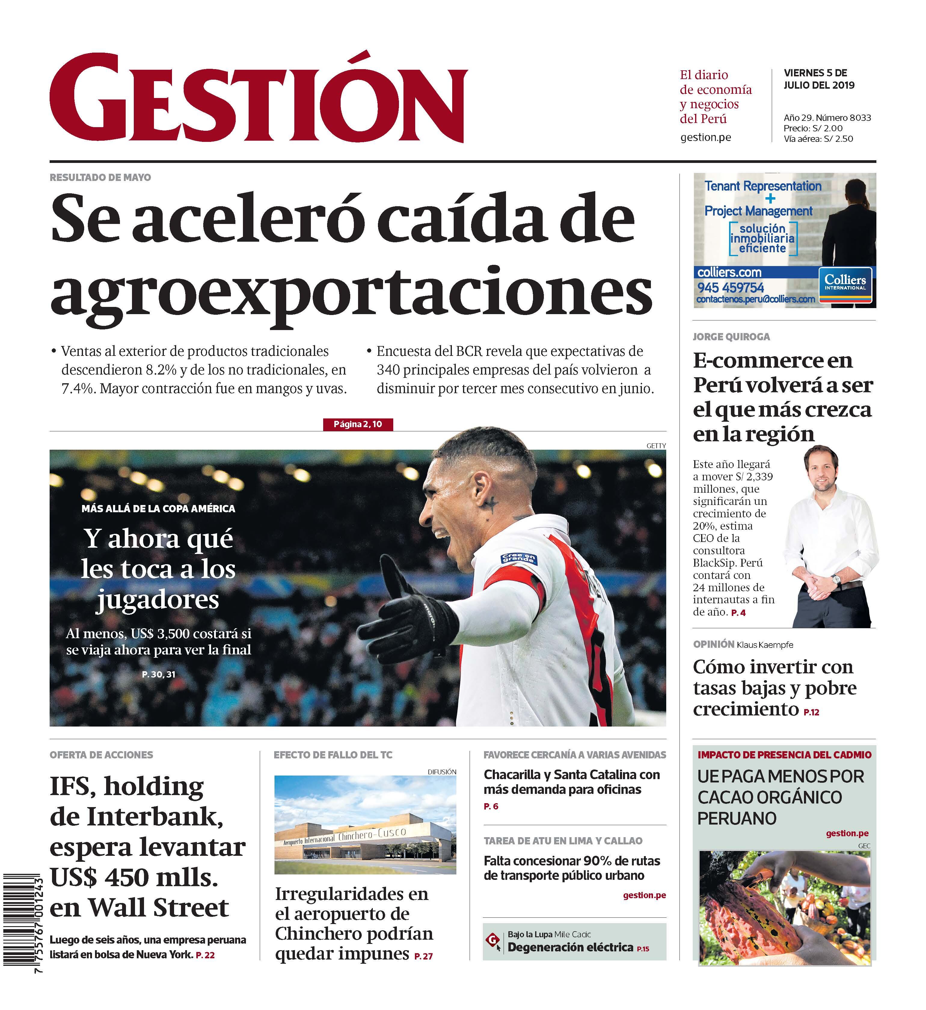 Ventas al exterior de productos tradicionales descendieron 8.2% y de los no tradicionales, en 7.4%. Mayor contracción fue en mangos y uvas. Encuesta del BCR revela que expectativas de 340 principales empresas del país volvieron a disminuir por tercer mes consecutivo en junio.