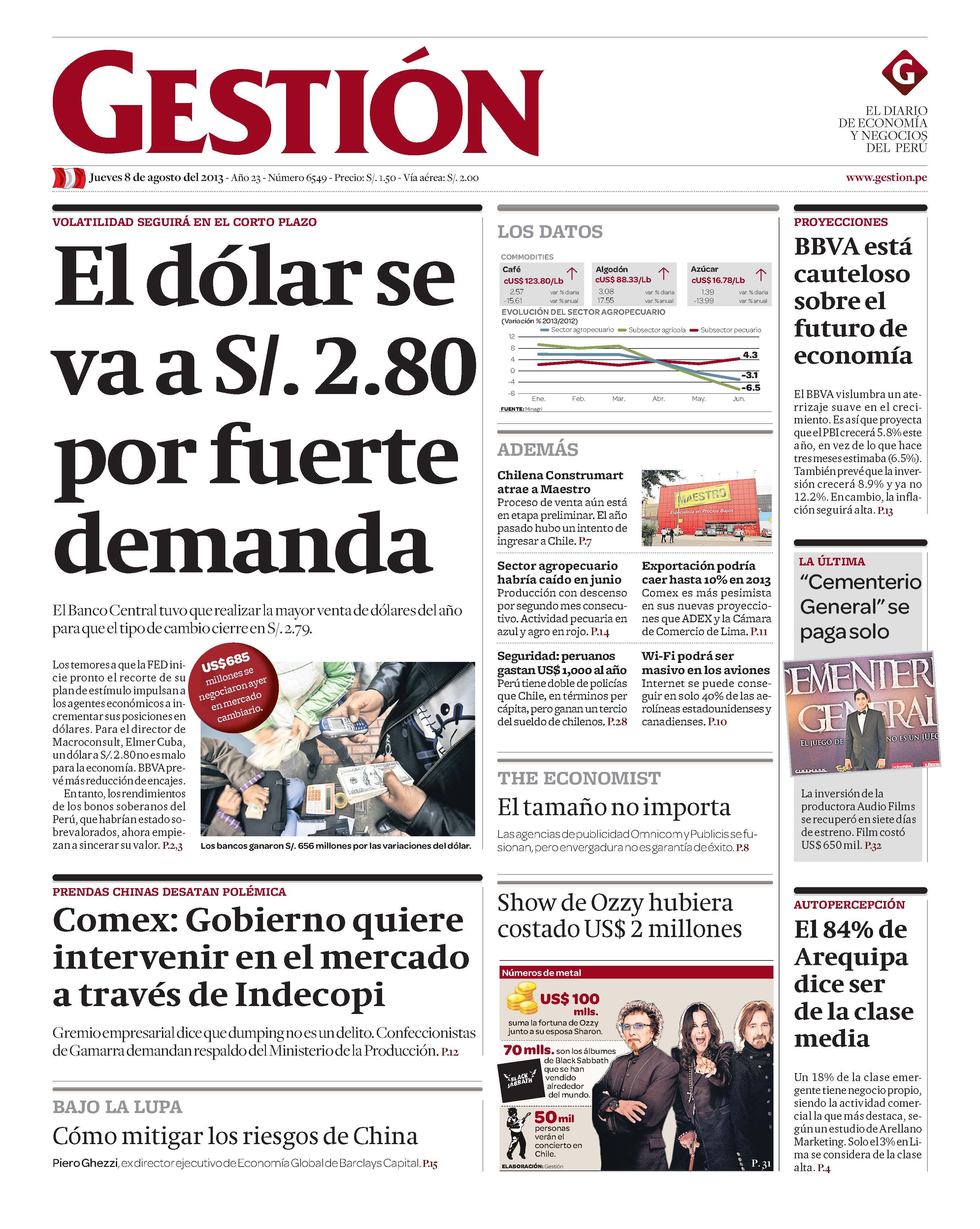 El Banco Central tuvo que realizar la mayor venta de dólares del año para que el tipo de cambio cierre en S/. 2.79. Los temores a que la FED inicie pronto el recorte de su plan de estímulo impulsan a los agentes económicos a incrementar sus posiciones en dólares. Para el director de Macroconsult, Elmer Cuba, un dólar a S/. 2.80 no es malo para la economía. BBVA prevé más reducción de encajes.
