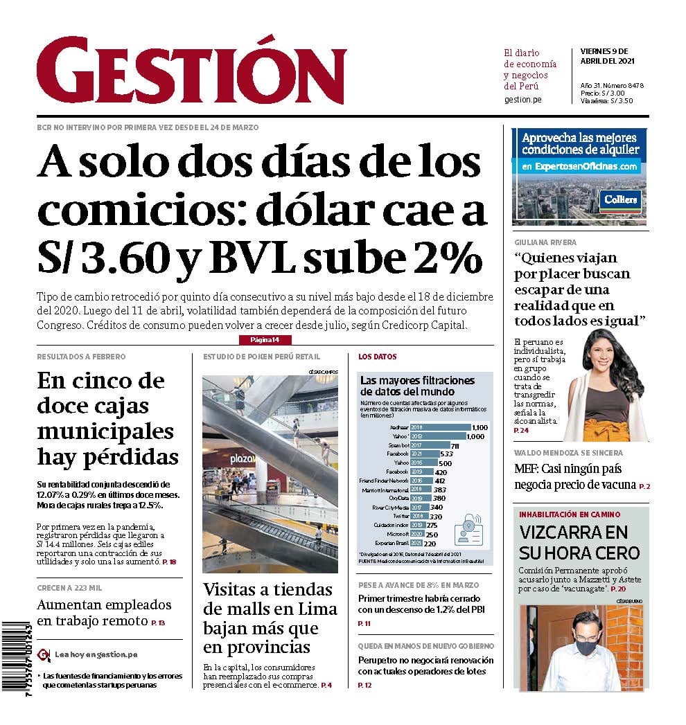 Tipo de cambio retrocedió por quinto día consecutivo a su nivel más bajo desde el 18 de diciembre del 2020. Luego del 11 de abril, volatilidad también dependerá de la composición del futuro Congreso. Créditos de consumo pueden volver a crecer desde julio, según Credicorp Capital.