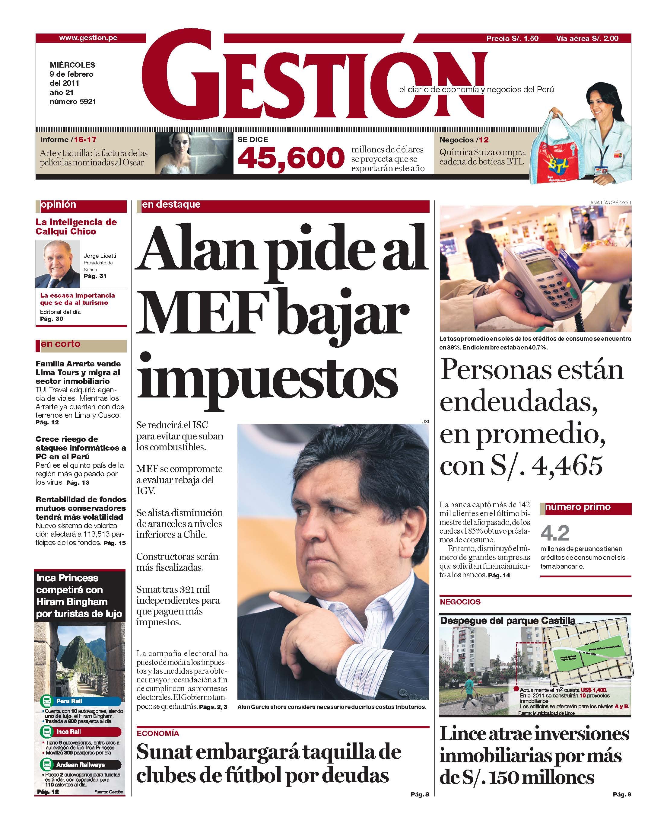 Se reducirá el ISC para evitar que suban los combustibles. MEF se compromete a evaluar rebaja del IGV. Se alista disminución de aranceles a niveles inferiores a Chile. Constructoras serán más fiscalizadas. Sunat tras 321 mil independientes para que paguen más impuestos. La campaña electoral ha puesto de moda a los impuestos y las medidas para obtener mayor recaudación a fin de cumplir con las promesas electorales. El Gobierno tampoco se queda atrás.