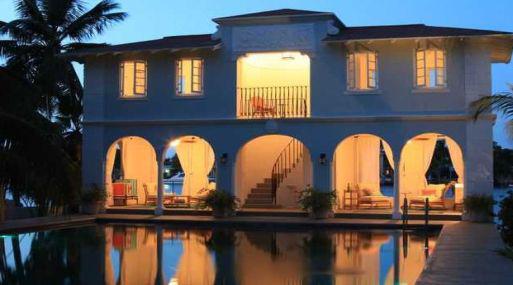 El palacete de estilo español cuenta con siete dormitorios, cinco baños, una casa de invitados, una playa privada con vistas a la bahía y una piscina rematada con un espectacular porche.