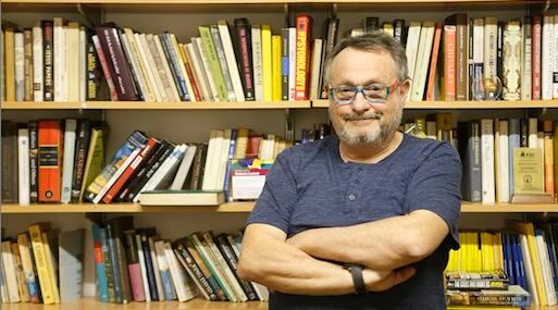 La oficina de Roberto Lerner es también una biblioteca. "He perdido libros como para llenar dos bibliotecas", señala. "Pero tampoco ya tengo espacio para más", agrega y posa para las fotos.