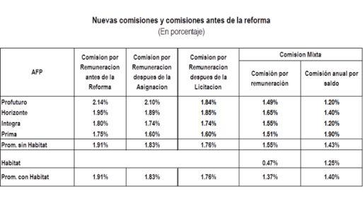 Las cuatro administradoras de fondos de pensiones (AFP) que no ganaron la primera licitación de afiliados presentaron a la Superintendencia de Banca, Seguros y AFP (SBS) las nuevas comisiones que aplicarán a sus afiliados, tanto para el caso de comisión mixta y comisión por remuneración.