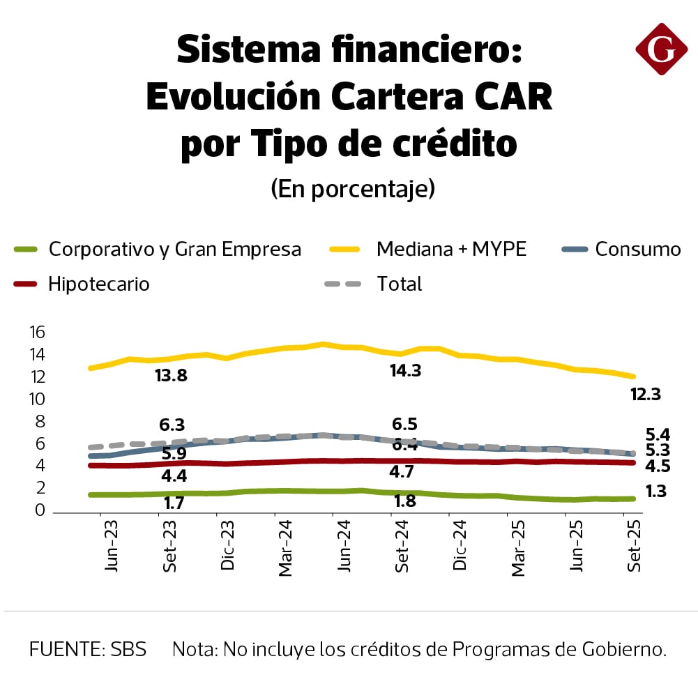 Mogrovejo destacó el crecimiento de 3.8% anual reportado por la cartera de créditos a setiembre, contando programas de gobierno (y 5.2% anual sin programas), lo que representa un mayor dinamismo del sistema. Además, subrayó que los nuevos desembolsos han mostrado un cambio de tendencia hacia un menor nivel de incumplimiento.
