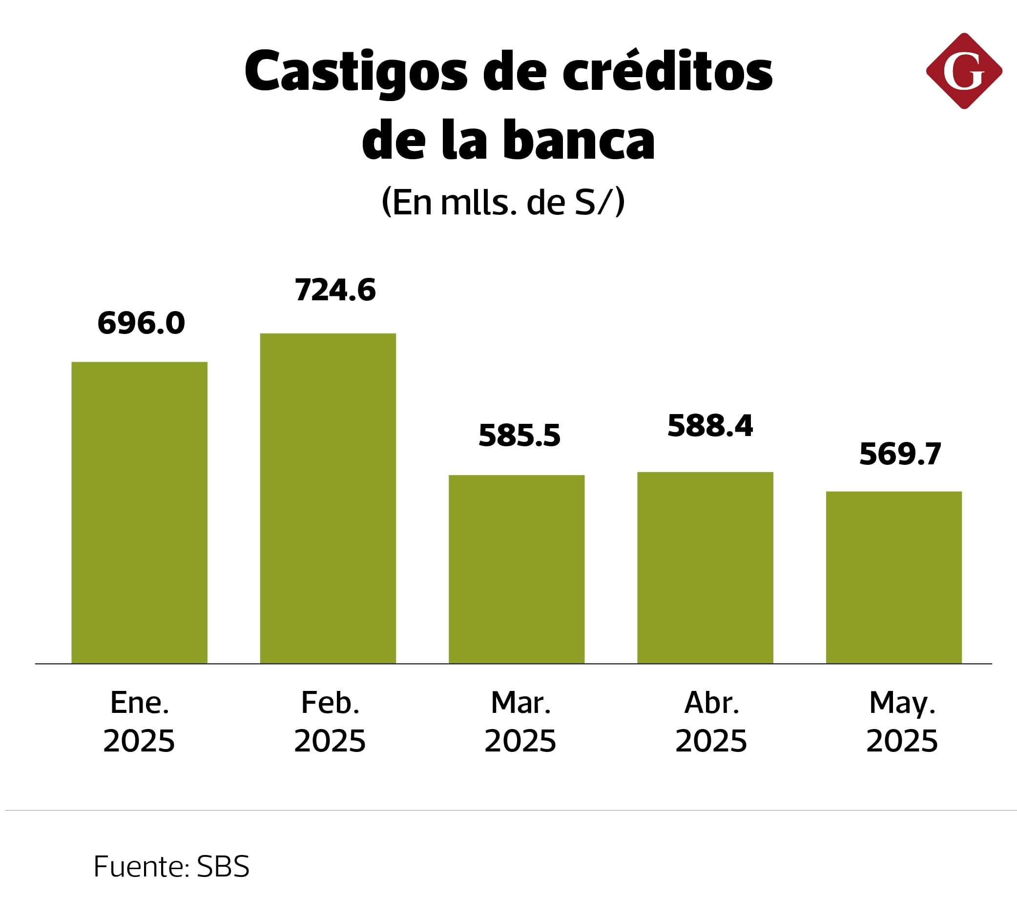La reducción obedece, en parte, a que el 2024 fue excepcional en cuanto a castigo de préstamos morosos que se acumularon por problemas arrastrados de años previos. Pero la cifra reportada al quinto mes del 2025 supera en 16% a la de igual lapso del 2023, duplica a la observada en el 2022 y es 81% mayor que en la prepandemia.