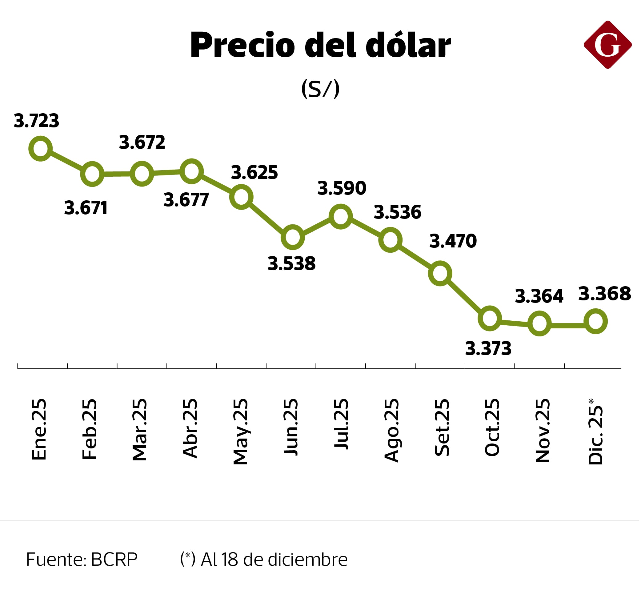 “Consideramos un tipo de cambio entre S/ 3.30 y S/ 3.35 para el cierre del 2026, pero si continúa la subida de los metales no deberían sorprendernos niveles más apreciados, por debajo del S/ 3.30”, señaló Carlos Prieto, gerente del Área de Estudios Económicos de BCP. Incluso si los metales se mantienen en precios actuales, el próximo año se vería un fortalecimiento del sol, agregó.