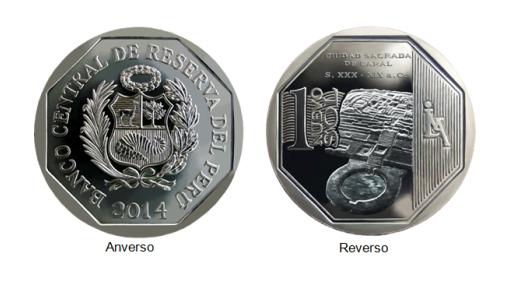 El Banco Central de Reserva (BCR) puso en circulación la nueva moneda de S/. 1 alusiva a la " Ciudad Sagrada de Caral ", ubicada en Supe – Lima y considerada la más antigua de América.