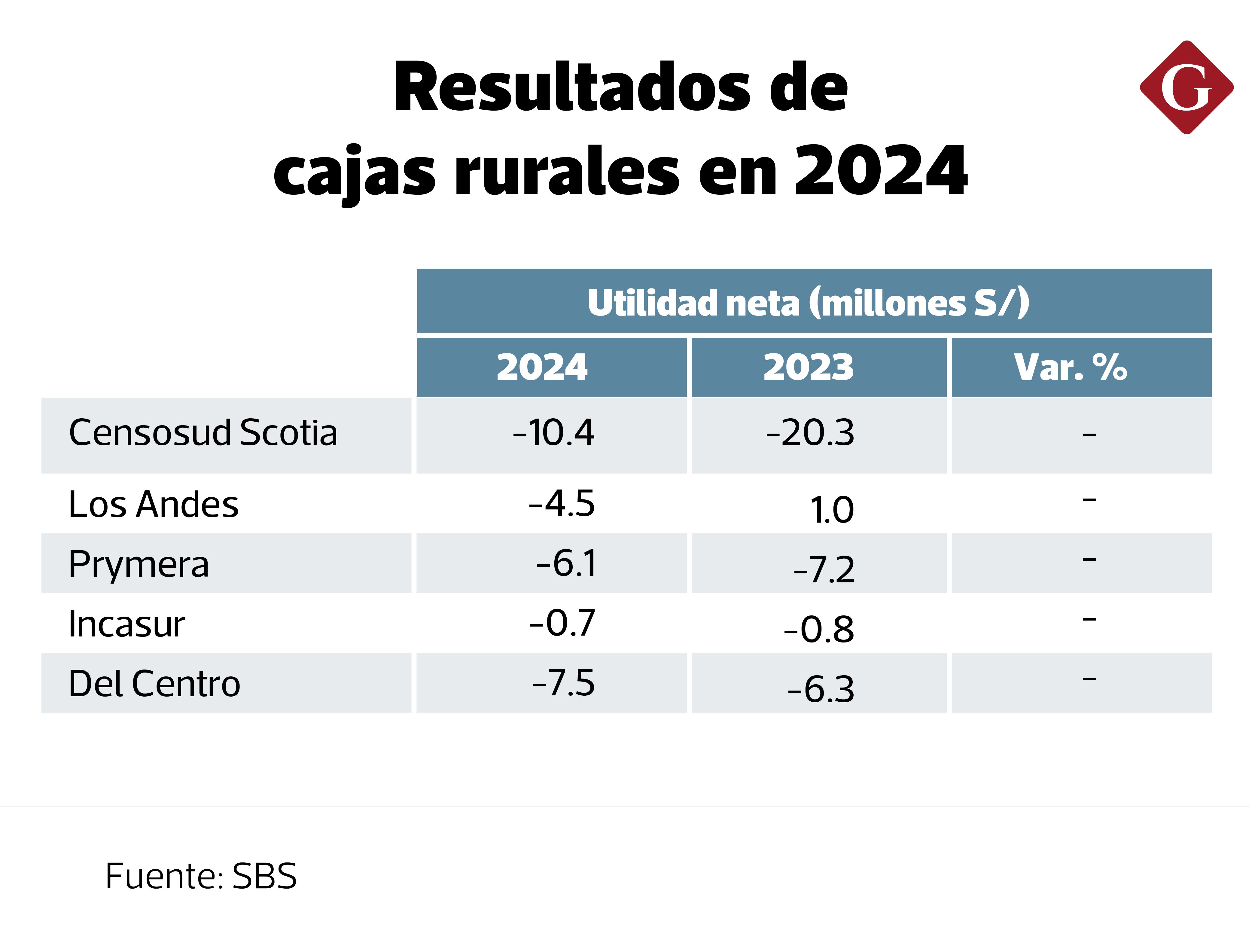 Las cajas rurales fueron las más afectadas dentro del sistema de microfinancieras en el último año y todas cerraron el 2024 en terreno negativo.
