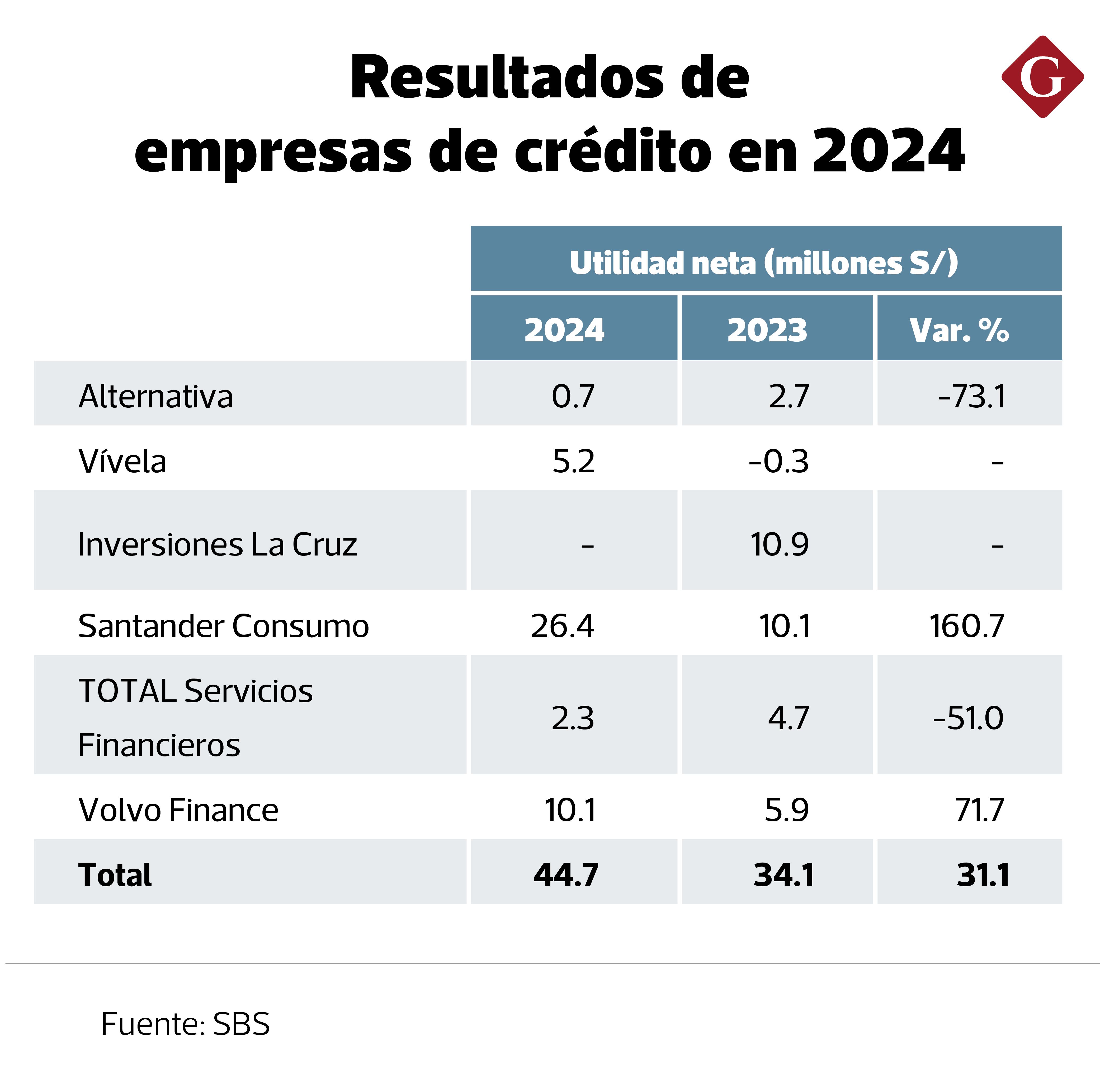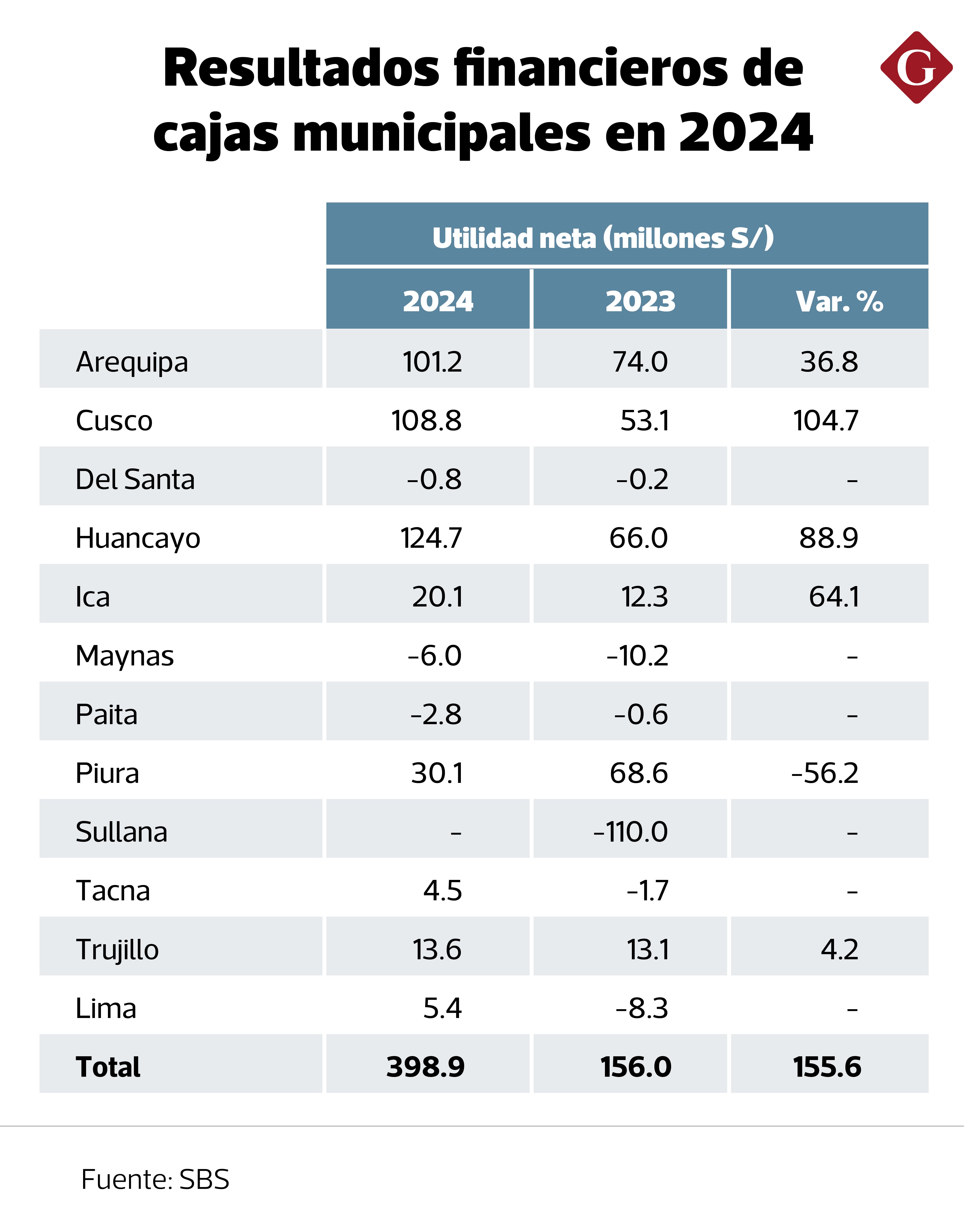 En las cajas ediles, hubo dos que pasaron de pérdidas en el 2023 a zona positiva en el 2024, enfatizó García. Además, una financiera y una caja municipal salieron del mercado y fueron absorbidas, mientras que una empresa de crédito dejó de estar supervisada por la SBS.