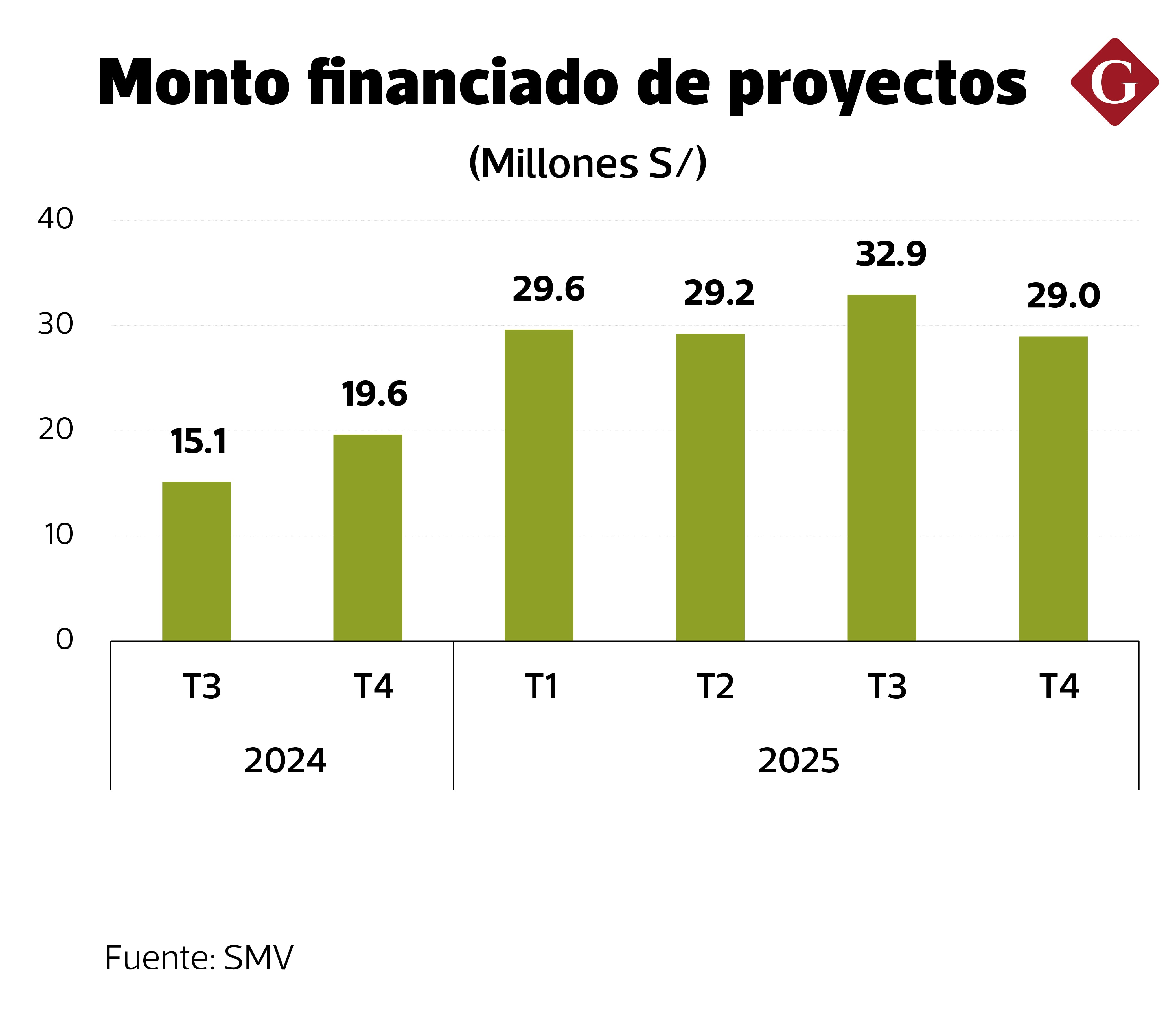 Durante el 2025, el monto total financiado alcanzó los S/ 120.3 millones distribuidos en 432 proyectos. La cifra representa más del doble de lo registrado en 2024, cuando se financiaron S/ 54.5 millones en 253 proyectos, según información de la Superintendencia del Mercado de Valores (SMV).