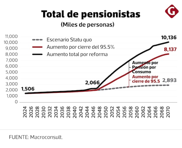 En contraste, Cuba refiere que la eliminación del retiro del 95.5% de los fondos en la jubilación y la incorporación de la pensión por consumo -planteadas en la reforma- impulsarían el número de pensionistas a 10.1 millones en el largo plazo.