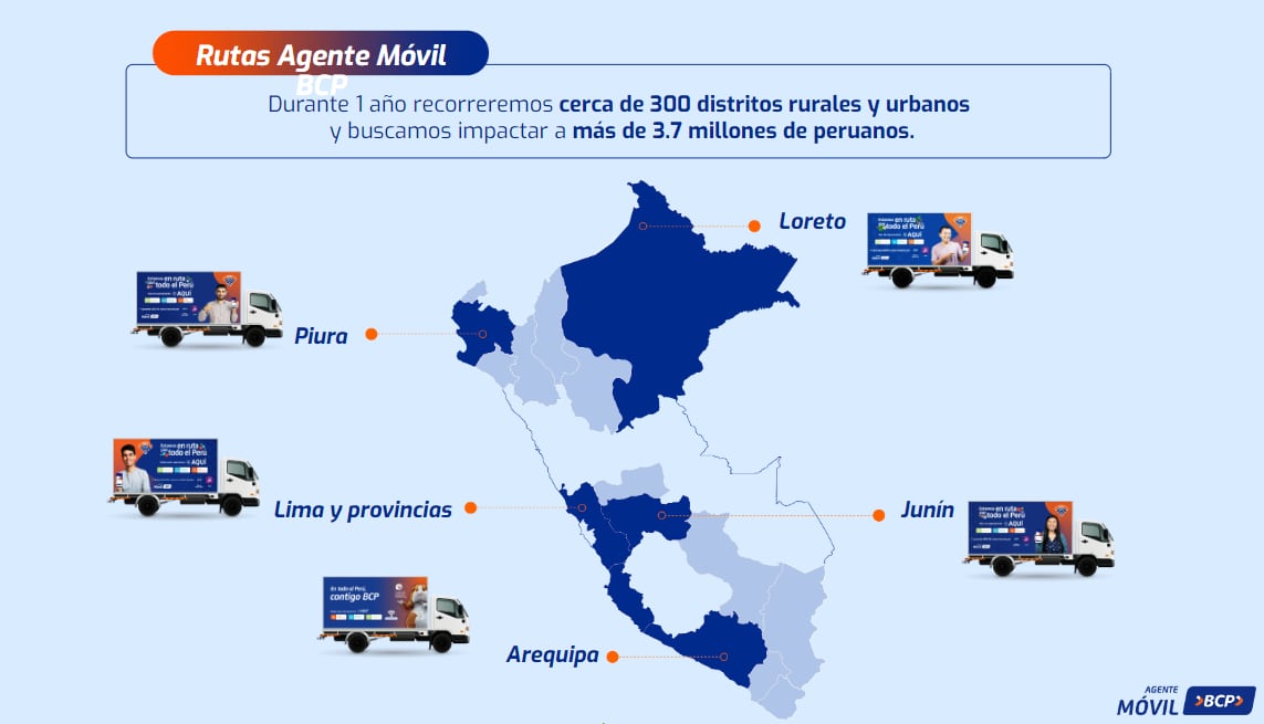 El BCP lanzó cuatro Agentes Móviles BCP, el nuevo formato de atención al cliente, que viajarán desde Lima hacia distintas regiones del país para atender a más de 3.7 millones de peruanos.