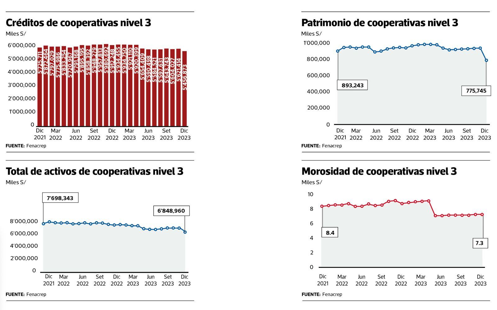 Este escenario económico también afectó el nivel de ahorros en el sistema de cooperativas, haciendo que bajen de S/ 8,172 millones a S/ 7,625 millones entre diciembre del 2022 y similar mes del 2023, de acuerdo con cifras de Fenacrep.