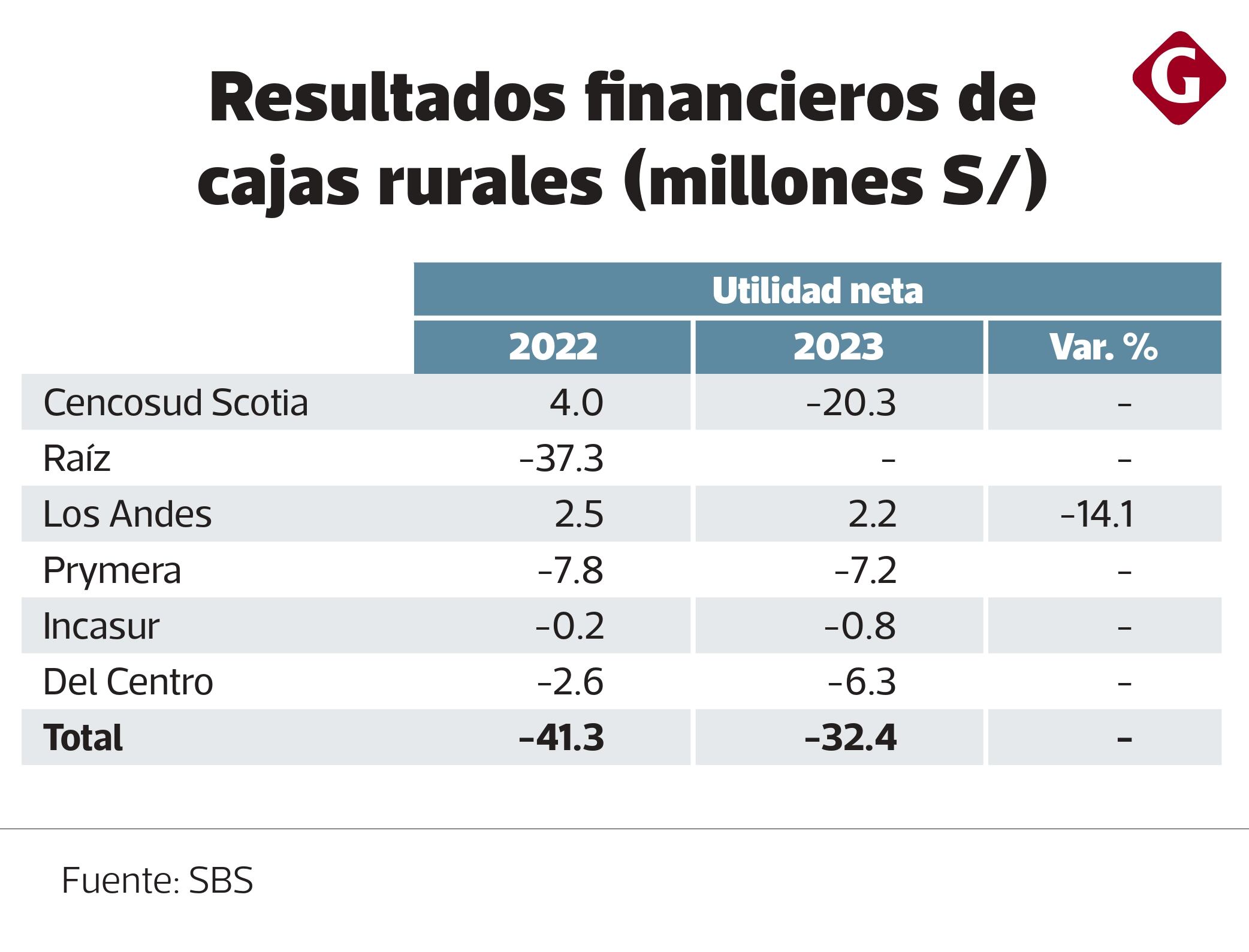 Para las cajas rurales el panorama fue más complejo pues en total acumularon pérdidas por S/ 32.4 millones durante el 2023. Este año incluyó la intervención y cierre de Caja Raíz por insolvencia.