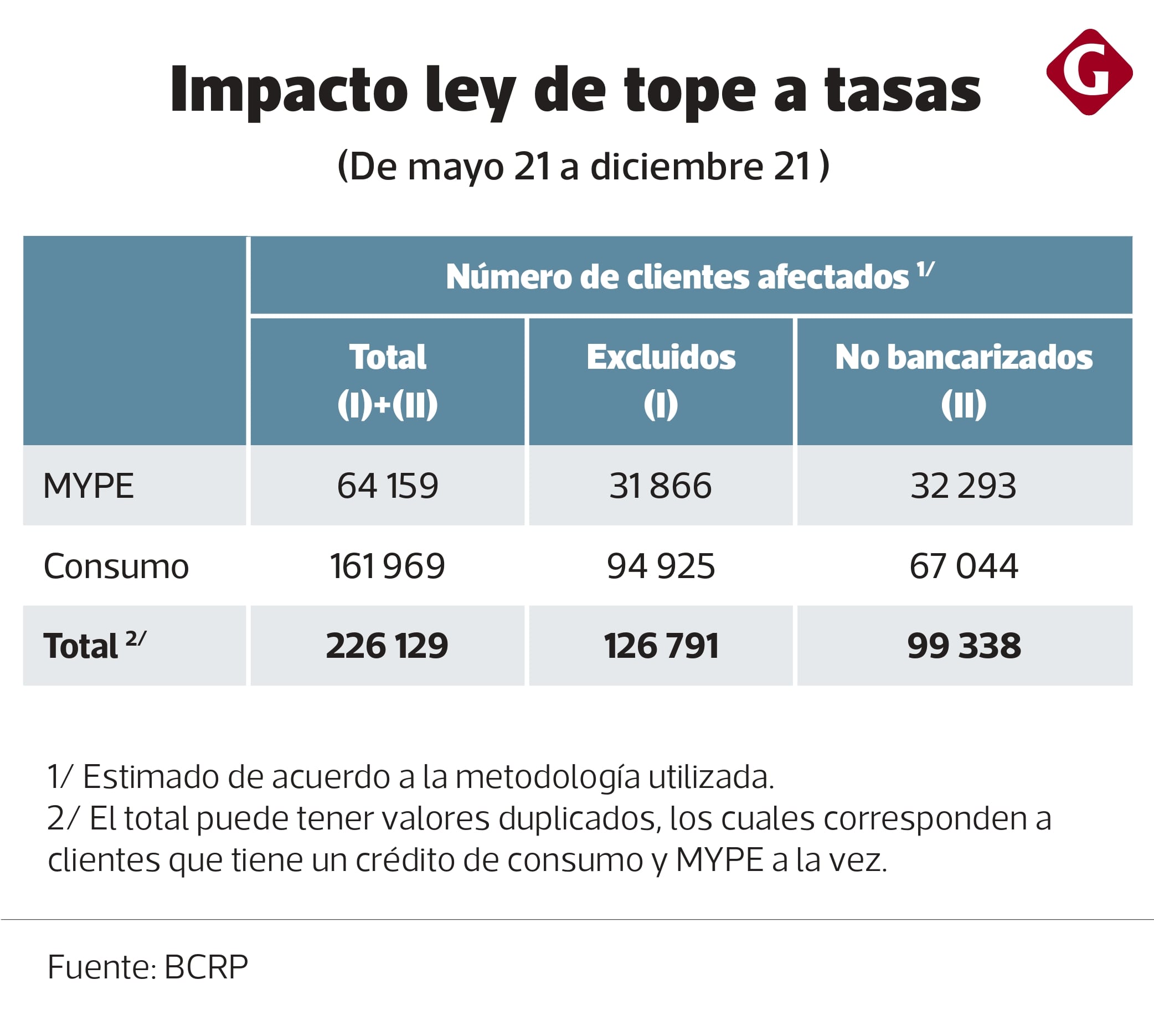 Con este tope se habrían expulsado del sistema financiero formal a más de 554,000 personas.