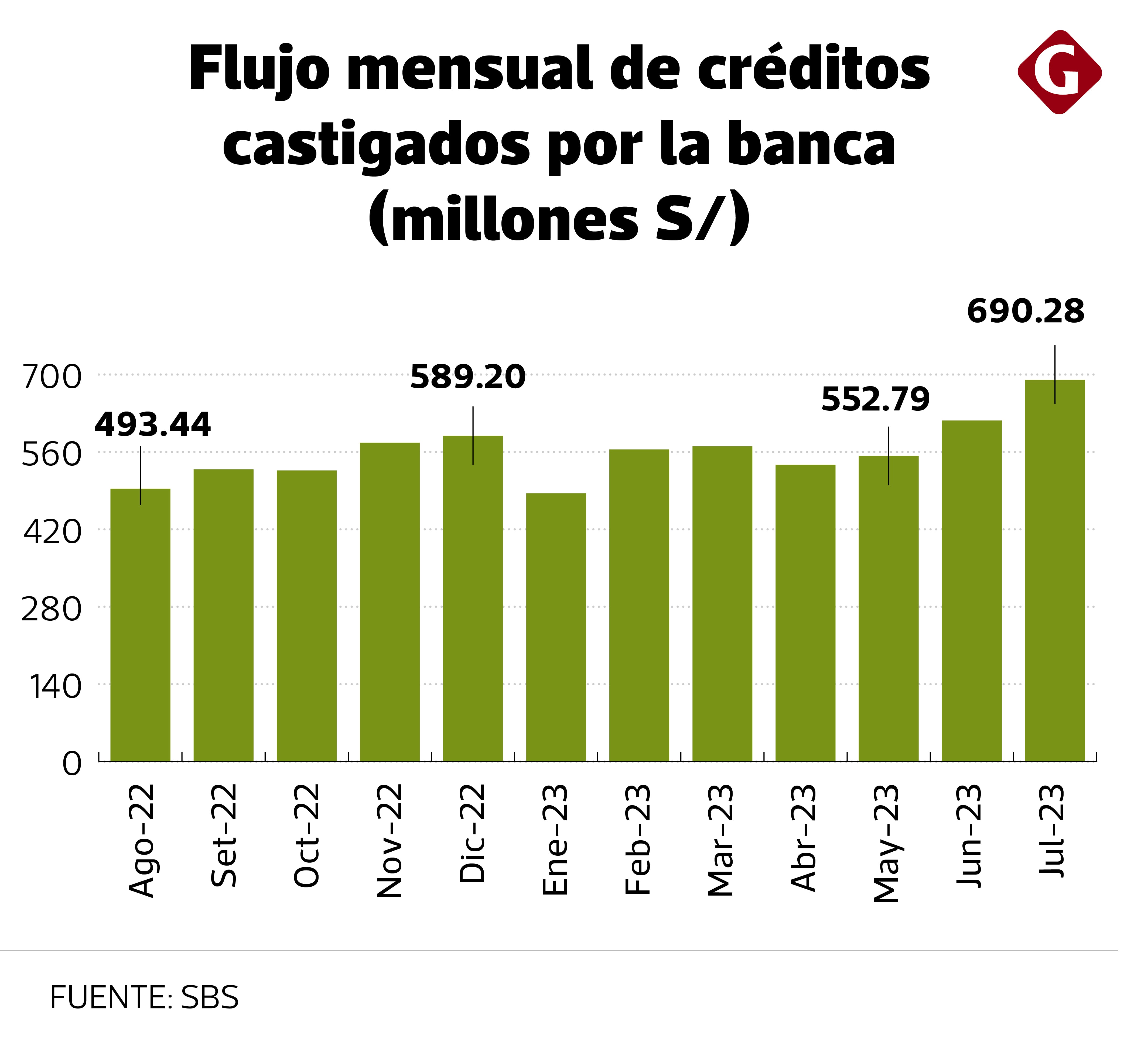Dicha cartera castigada corresponde a préstamos que han superado los 180 días de mora, los cuales son empaquetados por las entidades financieras y vendidos, a compañías especializadas de cobranza, para evitar afectarse por más tiempo con la elevada asignación de provisiones, explicó.