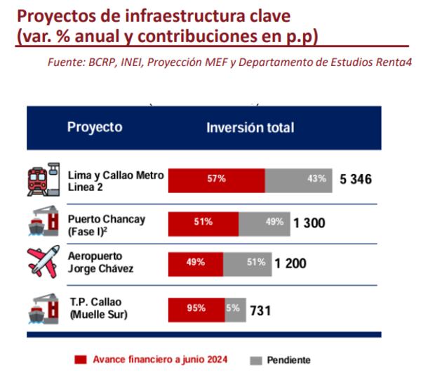 La ejecución de proyectos importantes como la Línea 2 del Metro de Lima, el Puerto de Chancay, la ampliación del Aeropuerto Jorge Chávez y la terminal de Puerto de Callao potenciarían el dinamismo del sector, apreciando las acciones de estas empresas.