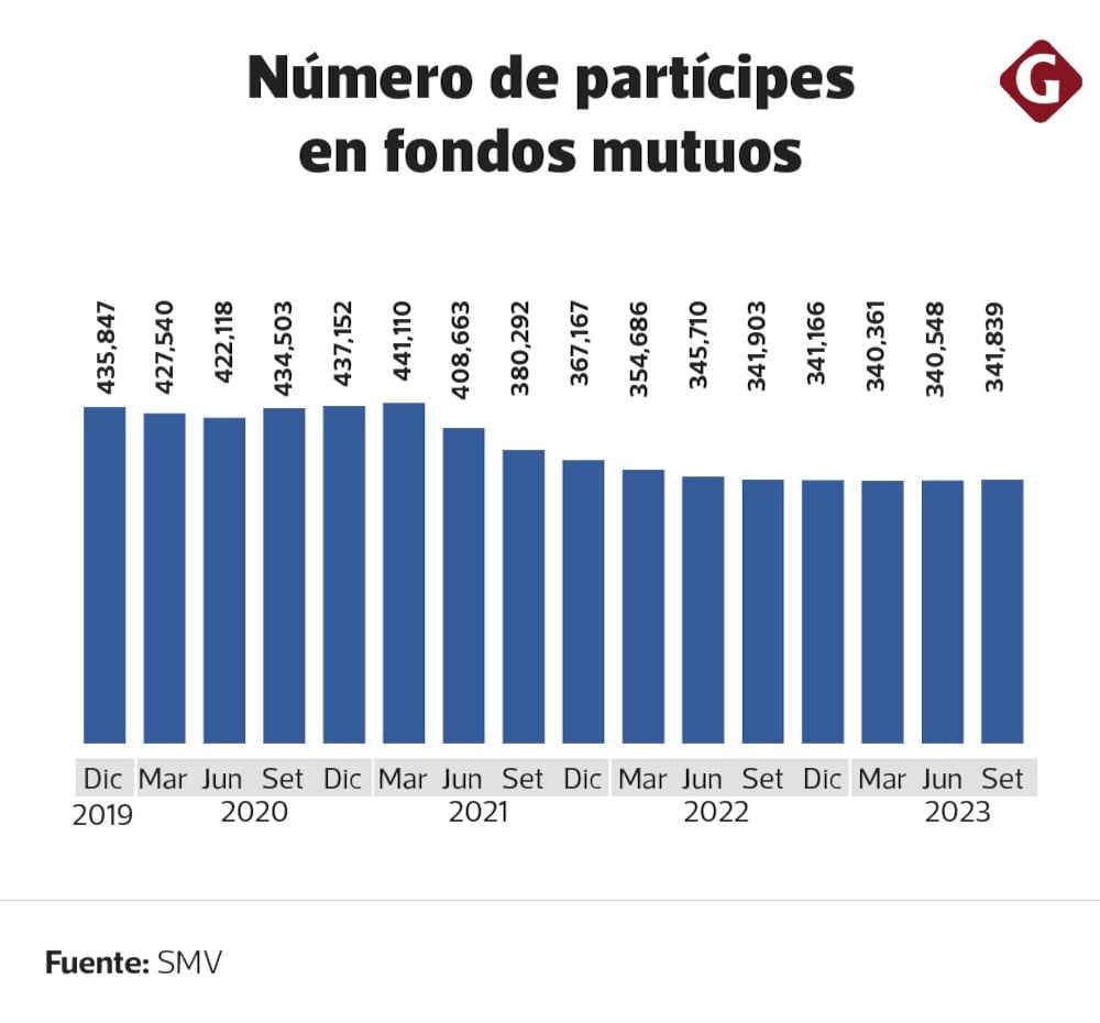 De acuerdo con la SMV, hay 341,839 inversionistas en fondos mutuos al noveno mes, esto es, apenas 673 más que los vistos al cierre de 2022. Si bien algunos partícipes migraron hacia depósitos a plazo durante el primer semestre, entre julio y setiembre se sumaron al mercado 1,291 inversionistas.