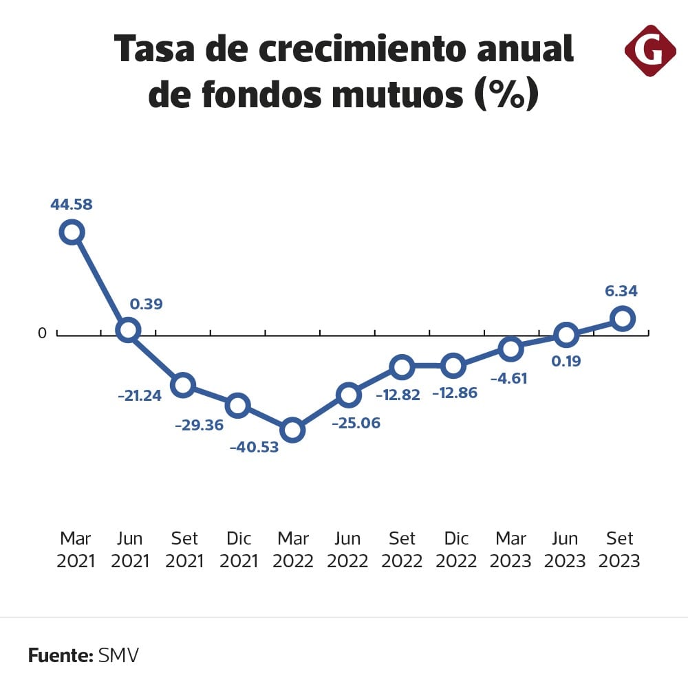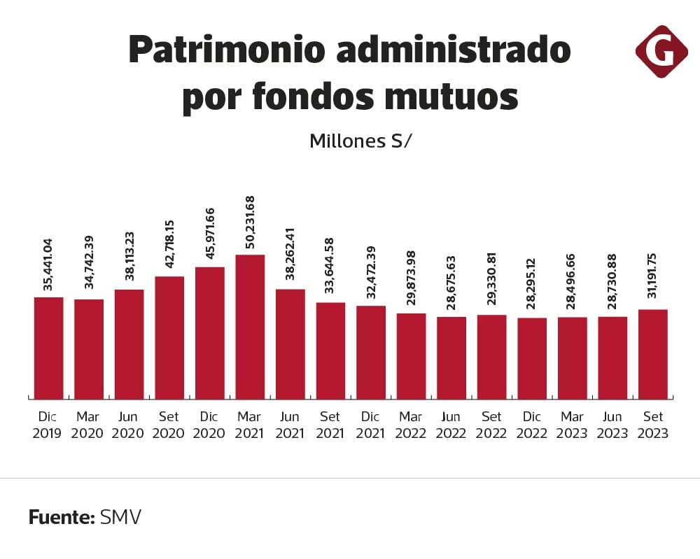 Con este aumento, los fondos mutuos acumularon S/ 31,191 millones al cierre de setiembre, 6.34% más que lo observado en similar mes de 2022 (S/ 29,330 millones), aunque todavía están por debajo de lo reportado en 2019 (S/ 35,441 millones).