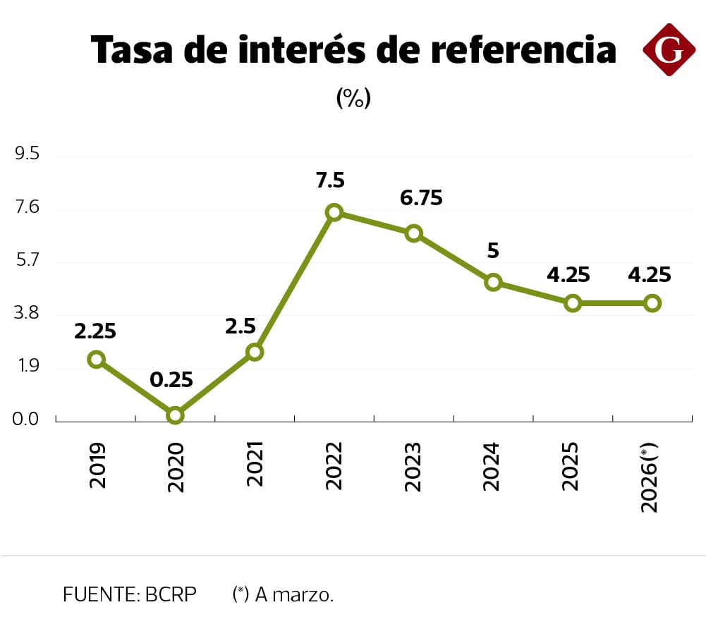 El BCR mantuvo la tasa de referencia en 4.25% en marzo, por sexto mes consecutivo, en medio de un ciclo de rebajas. La entidad señaló en su comunicado que “se prevé que la inflación se ubique transitoriamente en el tramo superior del rango meta durante los siguientes meses”. No obstante, mencionó que en el horizonte de proyección la inflación debería retornar en torno al 2%.