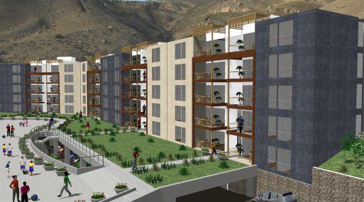 La obra contempla la construcción de 60 departamentos desde 110 metros cuadrados (m2), los cuales se distribuyen en seis torres sismorresistentes de cinco pisos cada una, y donde pueden vivir cómodamente familias integradas por cinco o seis personas.