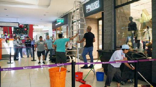 La inundación se reportó en varias tiendas del centro comercial, lo cual generó malestar entre la gran cantidad de público asistente en vísperas de Navidad.