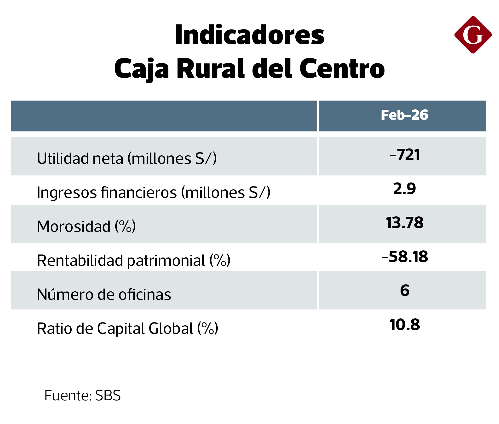 A febrero último, la entidad concentraba el 7% de los créditos directos y el 8.4% de los depósitos del sistema de cajas rurales, pero su rentabilidad patrimonial fue negativa (-58.18%).